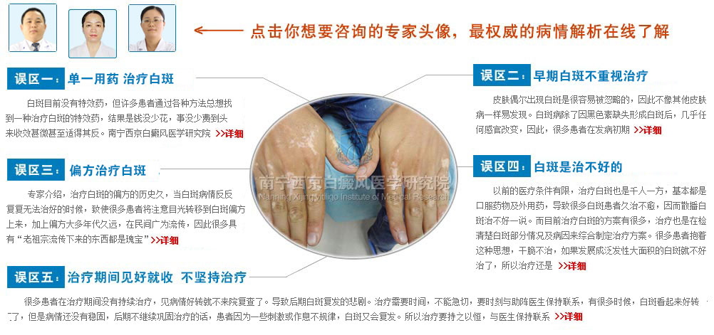 近年来白斑病的发病率逐年上升,由于其严重有损个人形象,并且难治疗,进而出现"谈白色变"的现象。对此南宁西京白癜风医学研究院专家指出,身上有白斑的时候,不要断然认定就是白斑病,应该去专业医院进行咨询诊疗。对任何一种疾病的恐惧,除了疾病本身顽固、难治以外,更多是因缺乏对疾病的全面了解而引发的忧虑。众所周知,白斑是一种易反复、难治愈,严重影响容貌的皮肤疾病。一直以来,很多患者对其存在很多认识上的误区。那么,白斑究竟有没有人们认识的那样恐怖?请一同走进下面深入、详尽的解答。