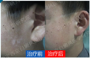 【患者资料】成立(化名) 男 11岁 南宁市人▲主诉:左面部及颈部白斑4月余▲现病史:患者四月前,因参加军训在阳光下暴晒后左面部及颈均出现散在点状白斑,曾在当地皮肤病医院诊断为白癜风,给予他...【详细】