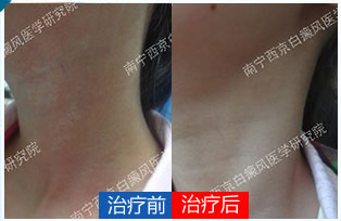 ▲基本信息:君茹(化名),女,9岁,南宁市兴宁区▲病例编号:X101001▲主诉:颈部白斑1年▲家族史:无▲既往史:无其他病史及无药物过敏史▲检查:1、伍德灯:颈部白斑 2、微量元素:铜离子降低,0.48...【详细】