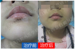 【患者资料】王莹莹(化名) 女 8岁 南宁市兴宁区▲主诉:左下唇,左髋部白斑1月余▲现病史:患者1月前无明显诱因下,发现下唇及做髋部小片状白斑,并逐渐扩展,从未诊治,今来我院就诊。▲既往史:经常感冒...【详细】