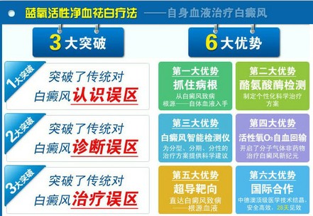 现在国际上有一个全新的治疗方法——蓝氧活性净血祛白疗法。这种疗法就可以解决白癜风患者所担心的上述两个顾虑。