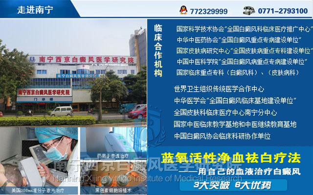 南宁西京白癜风医学研究院是一家以白癜风为研究、防治对象的专业机构,是我国专门从事白癜风科研与防治的重点单位。本院在上级卫生等相关部门的领导和支持下,经过不懈的努力,现已发展成为一座集科研、防治、教学、信息、开发于一体的白癜风专业机构,是我国白癜风临床科研与防治的先锋力量,被誉为白癜风患者康复的“最后一站”。多年来,在大力开展白癜风疾病的防治研究方面;在提高常见及难治白癜风诊疗水平方面;在开拓白癜风研究的新领域、研制开发新技术方面;在培训白癜风专业技术骨干方面,取得突出的成绩,做出积极的贡献。