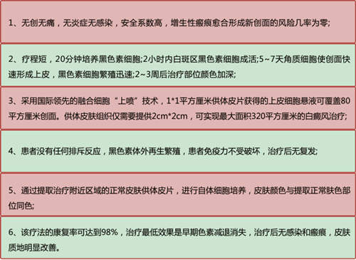 为提升2016南宁西京医疗质量管理服务年临床诊疗技术,切实解决白癜风大面积患者面临治疗技术缺失的情况,南宁西京白癜风研究院以肖海靖主任为核心的专家团队潜心科研,与海内外众多白癜风知名专家共同研发,终于攻克大面积白癜风诊疗技术——Recell细胞再生术。